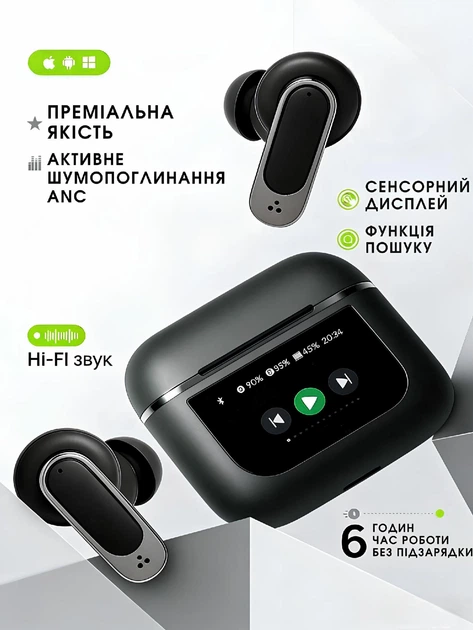 Бездротові навушники Langsdom TA05 Tour Pro з активним шумоподавленням ANC, ENC та сенсорним екраном кейса, Bluetooth 5.4