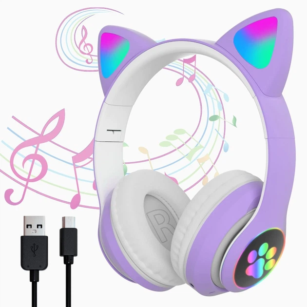 Бездротові накладні навушники Bluetooth 20 Вт 32 Ом із підсвічуванням для дітей STN-28 фіолетові зі штучної шкіри