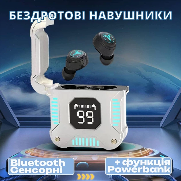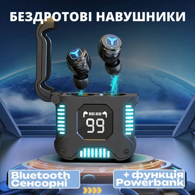Бездротові навушники M19 з цифровим дисплеєм, ліхтариком і павербанком
