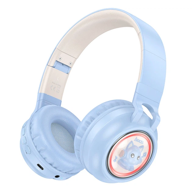 Bluetooth-гарнітура Hoco W50 Cute Fun, Стерео, High quality, Блакитний - 458251