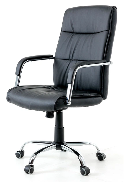 Офісне крісло комп'ютерне поворотне на коліщатках до 130 кг Чорне крісло для офісу з TILT Еко-Шкіра Польща