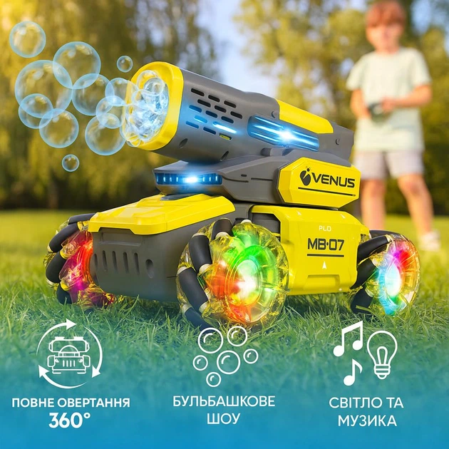 Радіокерований танк SL 8015A з мильними бульбашками, колеса Mecanum, світло та музика, 2.4 ГГц, акумулятор 3.7В