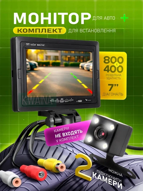 Автомобільний TFT LCD монітор 7 дюймів для камер заднього та переднього вигляду, установка на торпедо або врізна