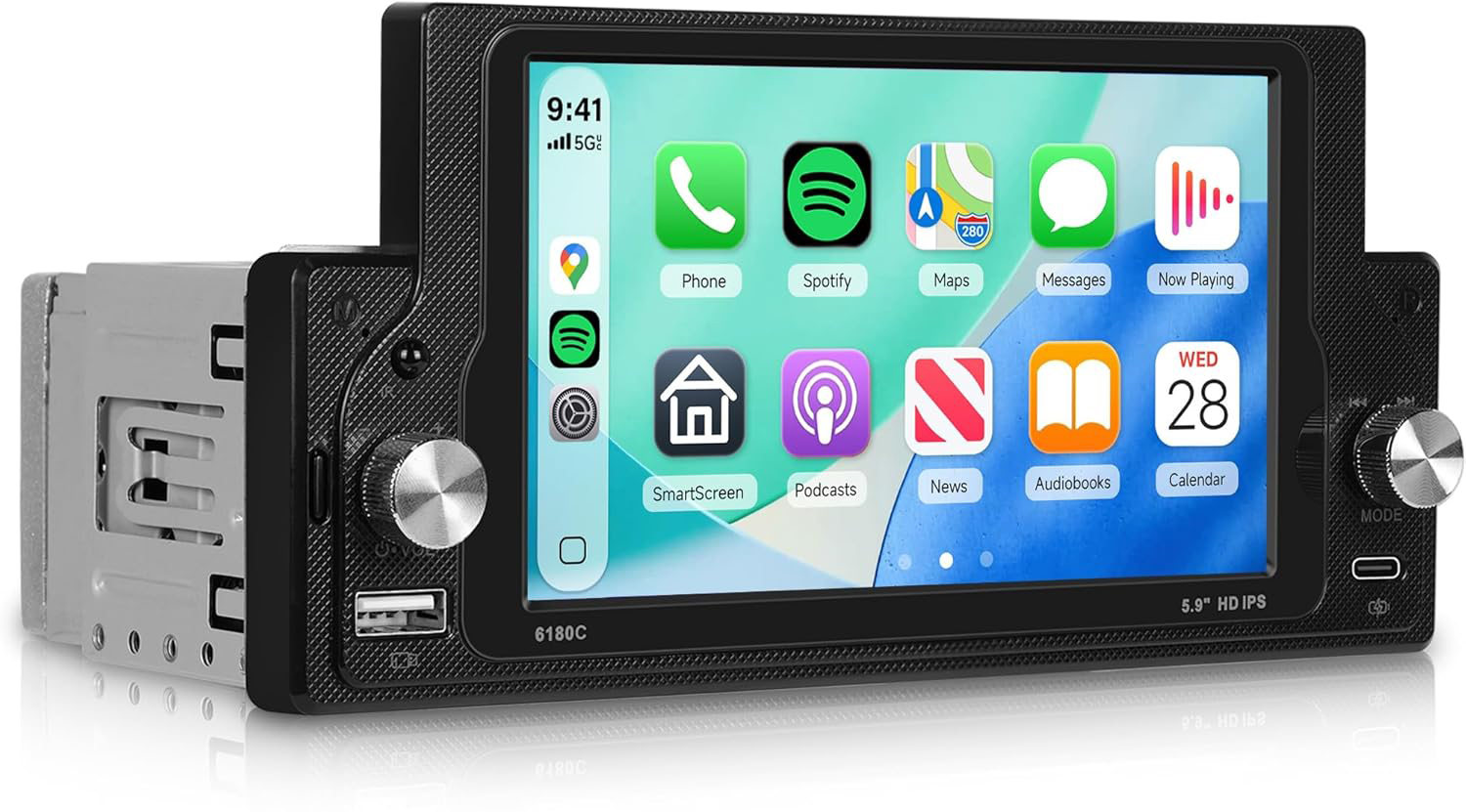 Діагональ: 7", AUX: є, BT: 4.2, Carplay / Android auto: підтримує роботу без дротів, G-сенсор: Є, Miracast: є підтримка бездротової трансляції екрана, WiFi: 5G, Інтерфейс: Type-C / AUX / AV вхід Автоматичне розбиття відео: по 1 / 3 / 5 хв., Відореєстратор: Є, Вага, грам: 270, Вбудований мікрофон: Так, Встановлення: на скло, Гарантія: 12 місяців