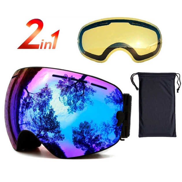 Гірськолижна Маска Синя Чорна Рама з Додатковою Лінзою Лижні окуляри для дорослих та підлітків Copozz AoFuson Nipsu