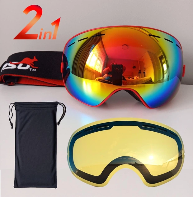 Гірськолижні Окуляри для Лиж + Змінна Жовта Лінза Лижні Маски Copozz Nipsu