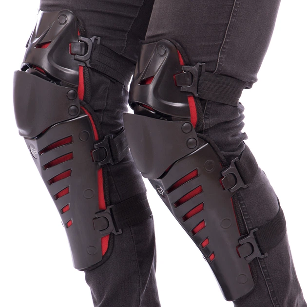 Мотозахист (коліно, гомілка) 2шт FOX RAPTOR (пластик, PL, Чорний-Червоний) (MS-7047Чорно-Червоний)