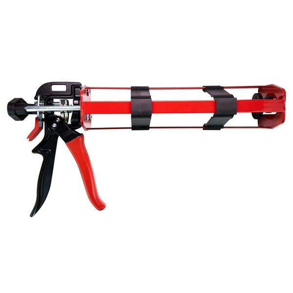 Посилений пістолет для видавлювання герметиків (скелет, рамка, рамоподібний). Призначений для видавлювання герметиків, клейких сумішей з туб 225 мм. Посилений корпус пістолета Товщина сталі корпуса 2,5 мм дозволяє працювати з великими зусиллями і в'язкими герметиками та клеями. Шток шестигранної форми не проковзує і надійно фіксує докладене зусилля. Посилені і міцні