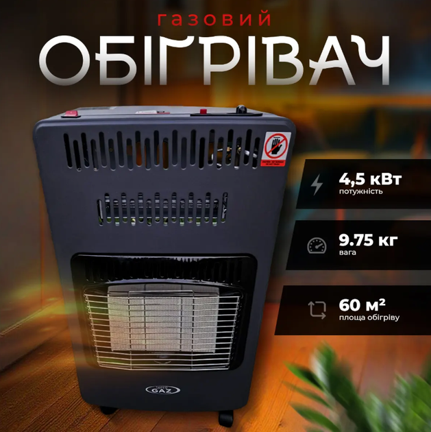 Газовий інфрачервоний нагрівач із системою газ-контролю 3200 ГП LQ-KB4A для дому намету 3200 Вт BF BK2970