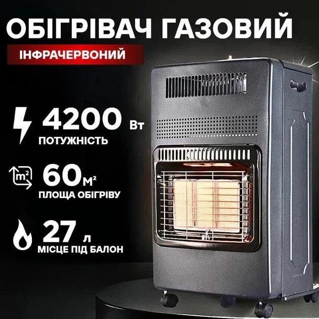Газовий інфрачервоний обігрівач 4,2 kW з шлангом та редуктором керамічний, обігрівач мобільний від балона з п'єзопідпалом дл
