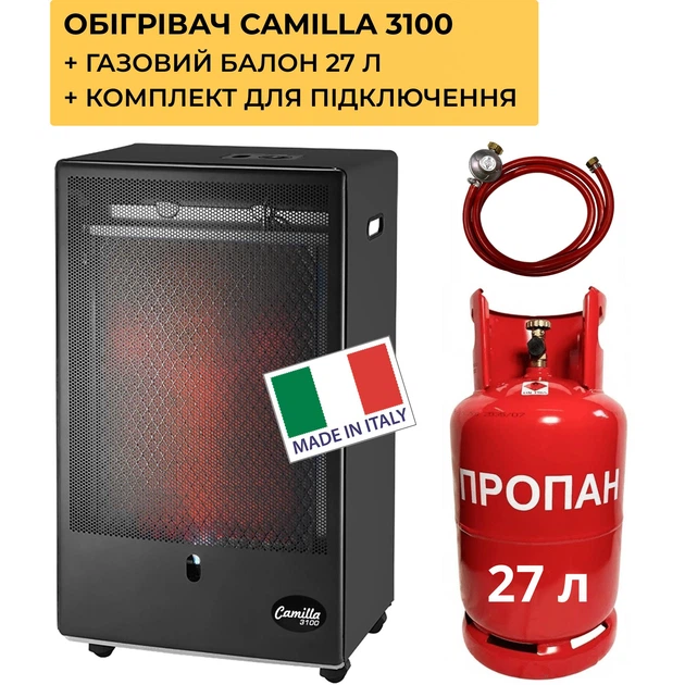 Газовий Обігрівач Каталітичний CAMILLA 3100 Ferretti (Італія), 3,4 кВт, з балоном 27 л і комплектом підключення — для кварти