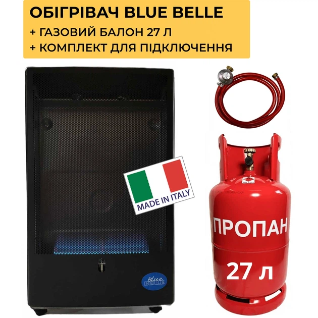 Газовий Обігрівач BLUE BELLE Ferretti (Італія), 4,2 кВт, з балоном 27 л і комплектом підключення — для квартири й будинку до