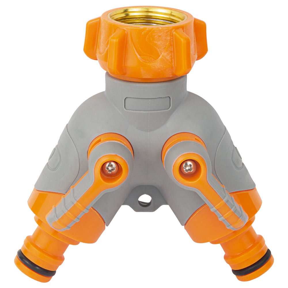 Кран розподільний Flora з адаптерами 1/2" 2 виходи на кран 3/4" з латунованою різьбою (ABS + TPR)