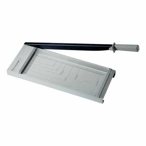 Призначений для маленького обсягу робіт. Довжина різу 320мм, товщина стопи різу. Двостороння шкала-лінійка. Металева основа столу, не деформується з часом.