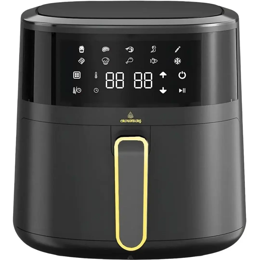 Мультипіч настільна Crownberg, 2000 Вт аерогриль-фритюрниця з LED-дисплеєм і функцією автовідключення та таймером, Чорний (І
