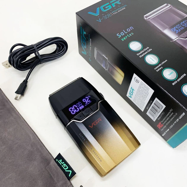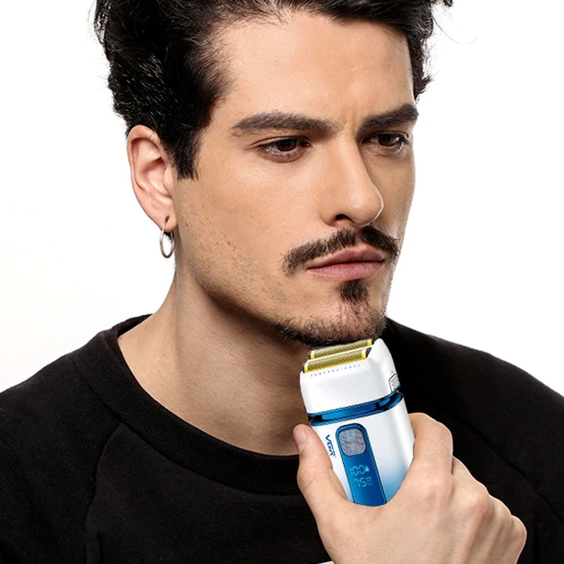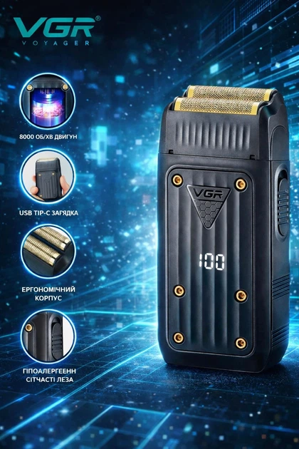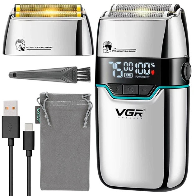 Бритва електрична VGR портативна, акумуляторна, водостійка, подвійна сітка, LED дисплей