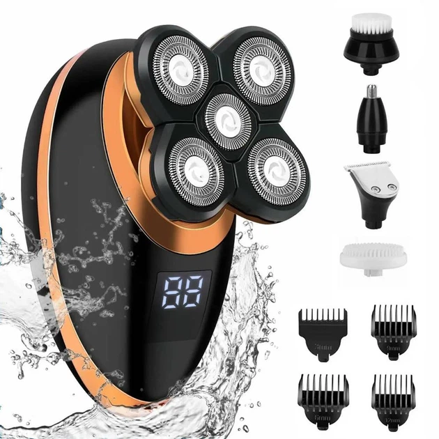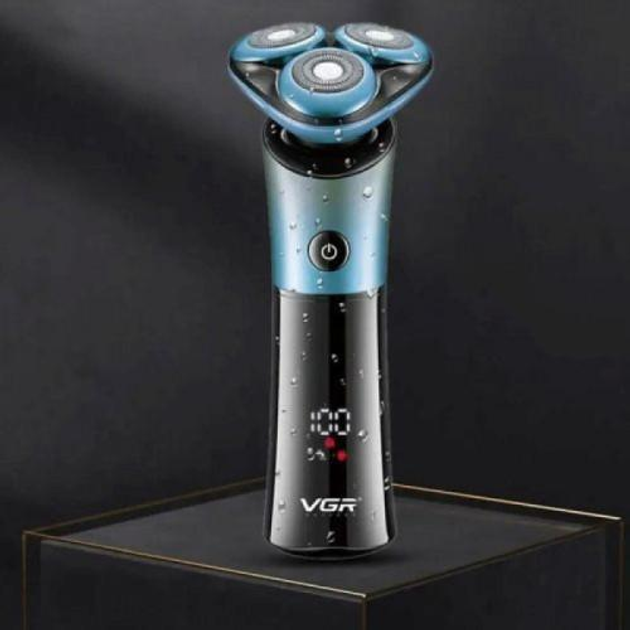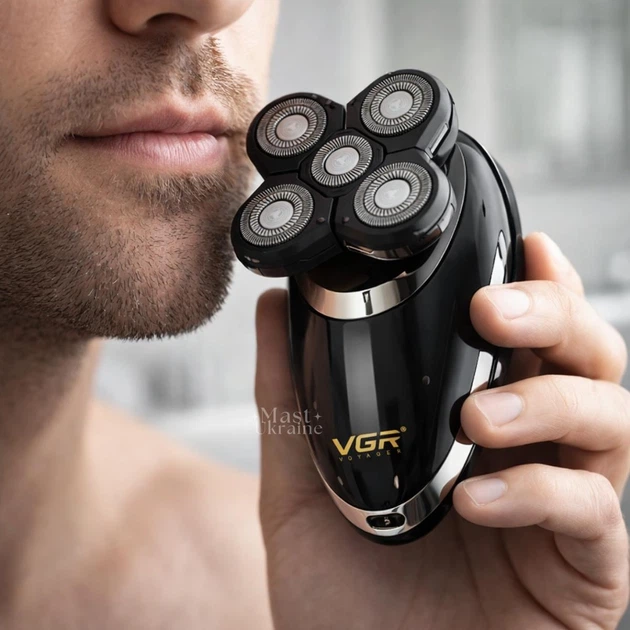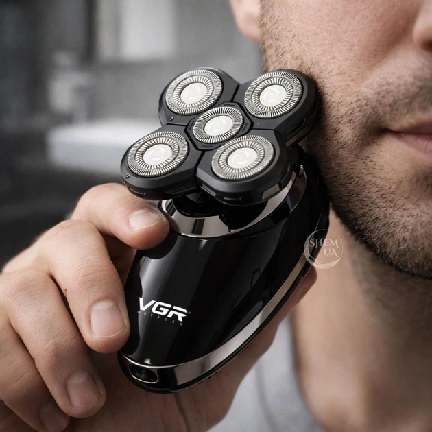 Електробритва роторна акумуляторна чоловіча VGR з 5 плаваючими головками 5D для вологого та сухого гоління, багатофункціонал