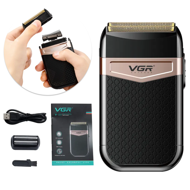 Бездротова функціональна електробритва – шейвер VGR з гіпоалергенними сітками з титану R70-B00