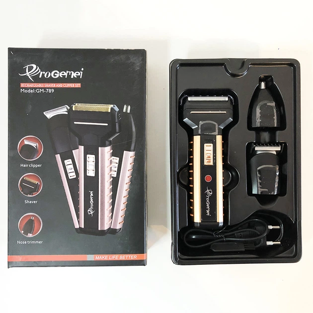 Електрична бритва Gemei GM-789, 3 насадки, Чоловіча електробритва для гоління бездротова електробритва