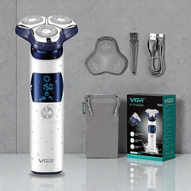 Електробритва VGR V чоловіча акумуляторна шейвер-бритва з LED-дисплеєм, сухе/вологе гоління, 5 Вт (283)
