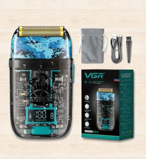 Електробритва професійний шейвер VGR Waterproof IPX6 LED Display metal з трьома ножовими блоками