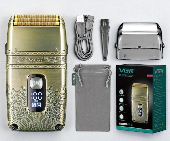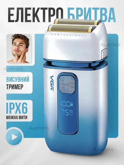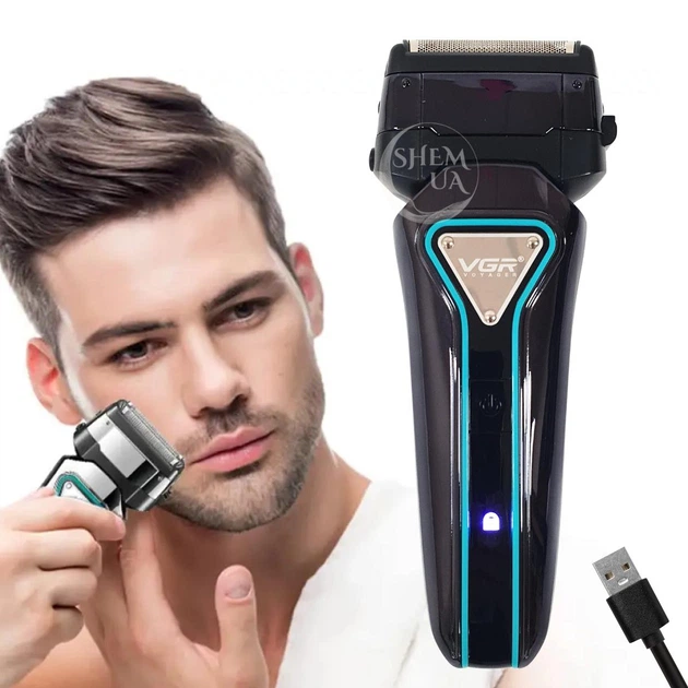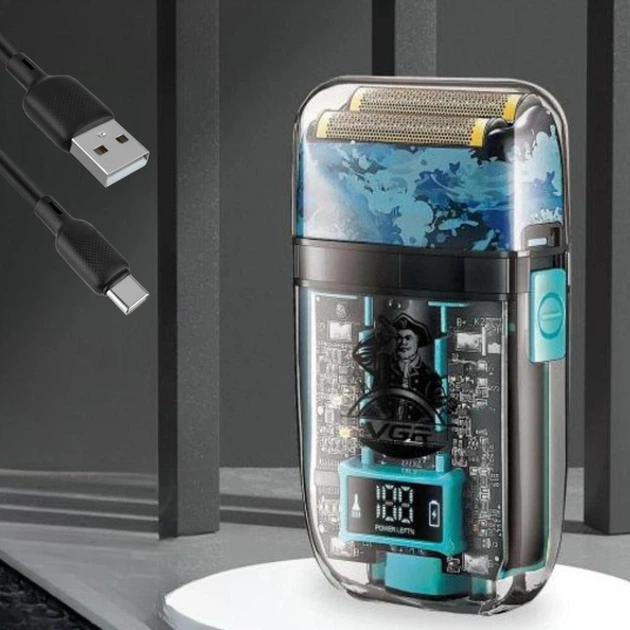 Електробритва акумуляторна для сухого і вологого гоління VGR, портативний чоловічий шейвер з подвійною сіткою, LED-дисплеєм