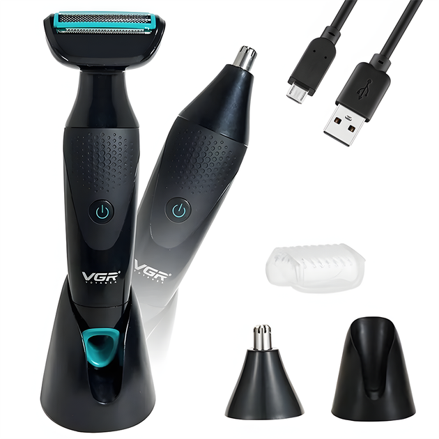 Акумуляторна електробритва 2в1 VGR V-601, від USB / Чоловіча бритва з підставкою / Тример для носа та вух