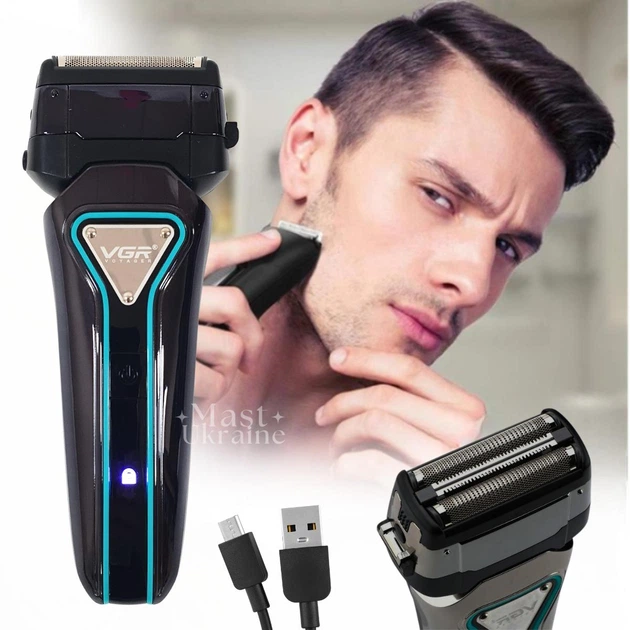 Електробритва акумуляторна сіткова з тримером VGR, чоловічий бездротовий шейвер з подвійною сіткою та USB-зарядкою, портатив
