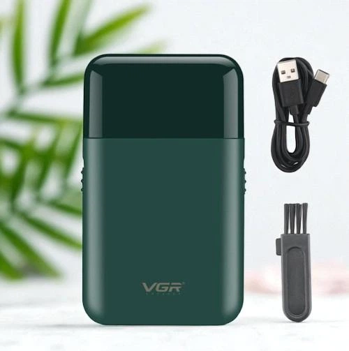 Електробритва акумуляторна VGR, сіткова, з портом зарядки USB Type-C, для щоденного сухого гоління, Зелений (О93)