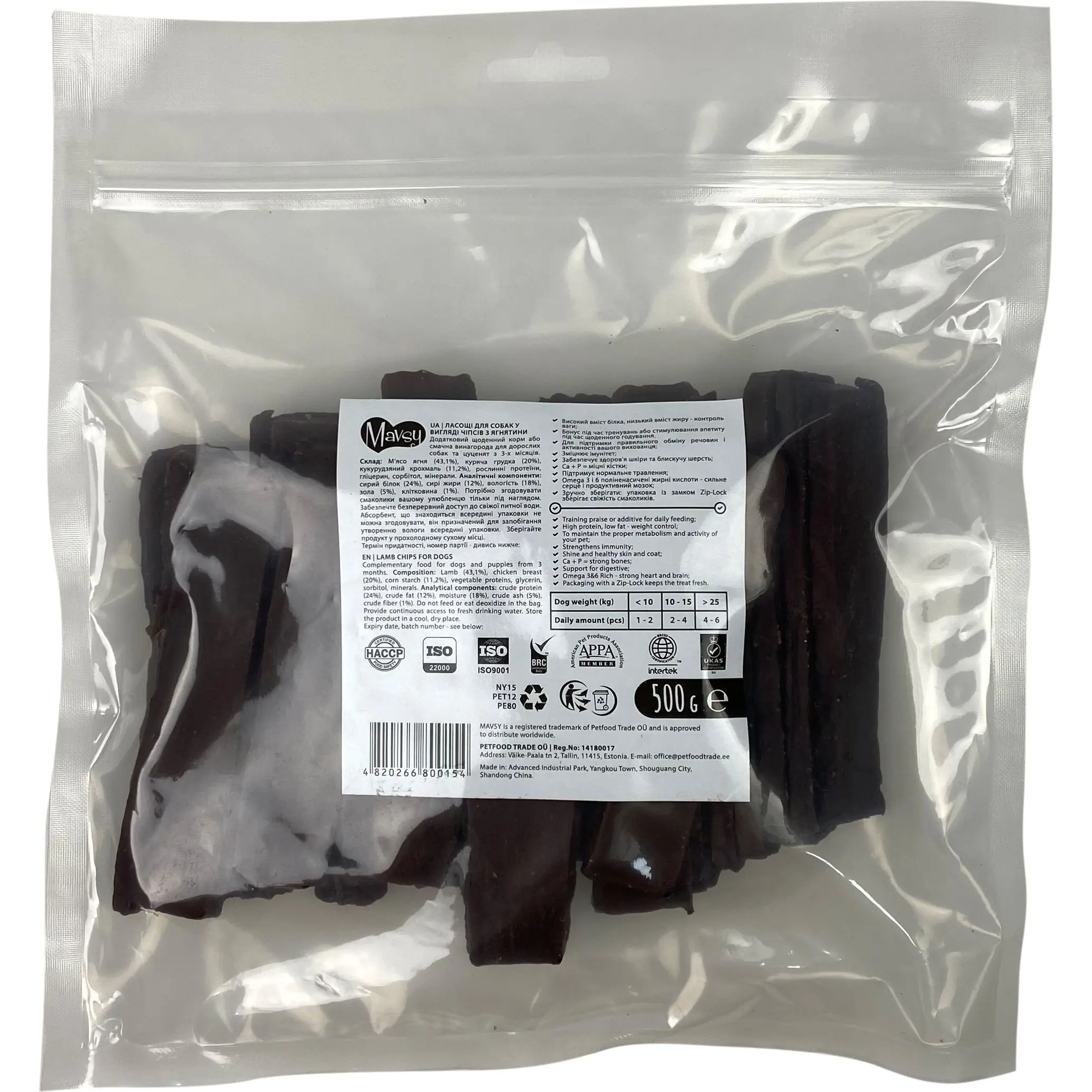 Ласощі для собак Mavsy Lamb chips з ягням 500 г