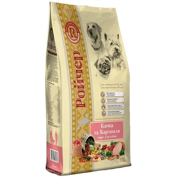 Ройчер Качка з Картоплею Корм для собак з чутливим травленням і непереносимістю курячого протеїну. (7,5 кг)