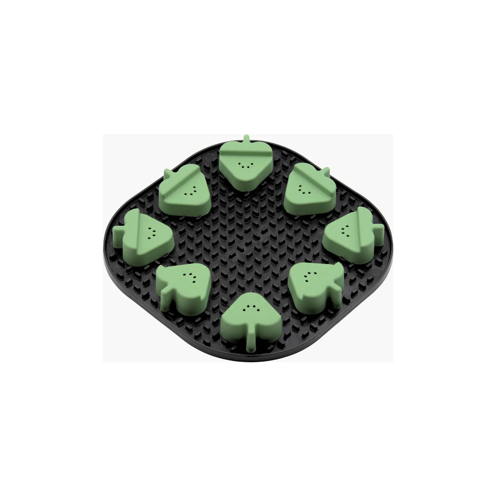 Спеціальний набір для справжніх нишпорок: килимок для злизування ласощів та іжі з нюховими накладками, під якими теж можна сховати смачненьке. Завдяки рельєфним елементам килимок уповільнює процес споживання їжі, зручний і комфортний для вашого вихованця. Виріб виготовлено з м’якого пластичного матеріалу, що добре прикріплюється до підлоги, завдяки чому не ковзає. Килимок для злизування ласощів і їжі має заспокійливий та розслабляючий ефект для домашніх тварин. А нюхові накладки відволікатимуть пухнастого. Килимки виготовлені з потішними рельєфними візерунками та у нейтральних кольорах, завдяки чому мають стильний вигляд. Основні характеристики: - Розмір: 25 х 25 см - Килимок для злизування ласощів і їжі та юхові накладки – поєднує в собі і корисний процес годування, й розвагу - Цікаве заняття для собаки, що завершується смачним заохоченням - Уповільнює прийом їжі - Заспокоює і розслабляє - Підтримує гігієну ротової порожнини - Можна заморожувати - Не ковзає підлогою - Екологічний матеріал: TPE-E (thermoplastic elastomer) - Колір: чорний, темно-сірий, світло-сірий, синій, бежевий, жовтий, зелений, рожевий. Виготовлено в Польщі.