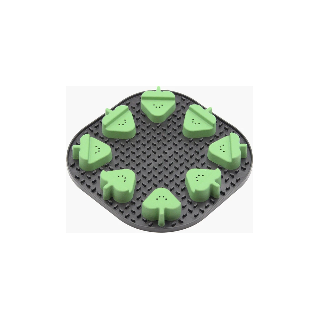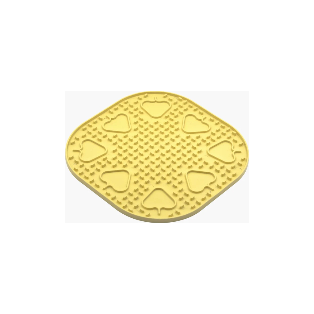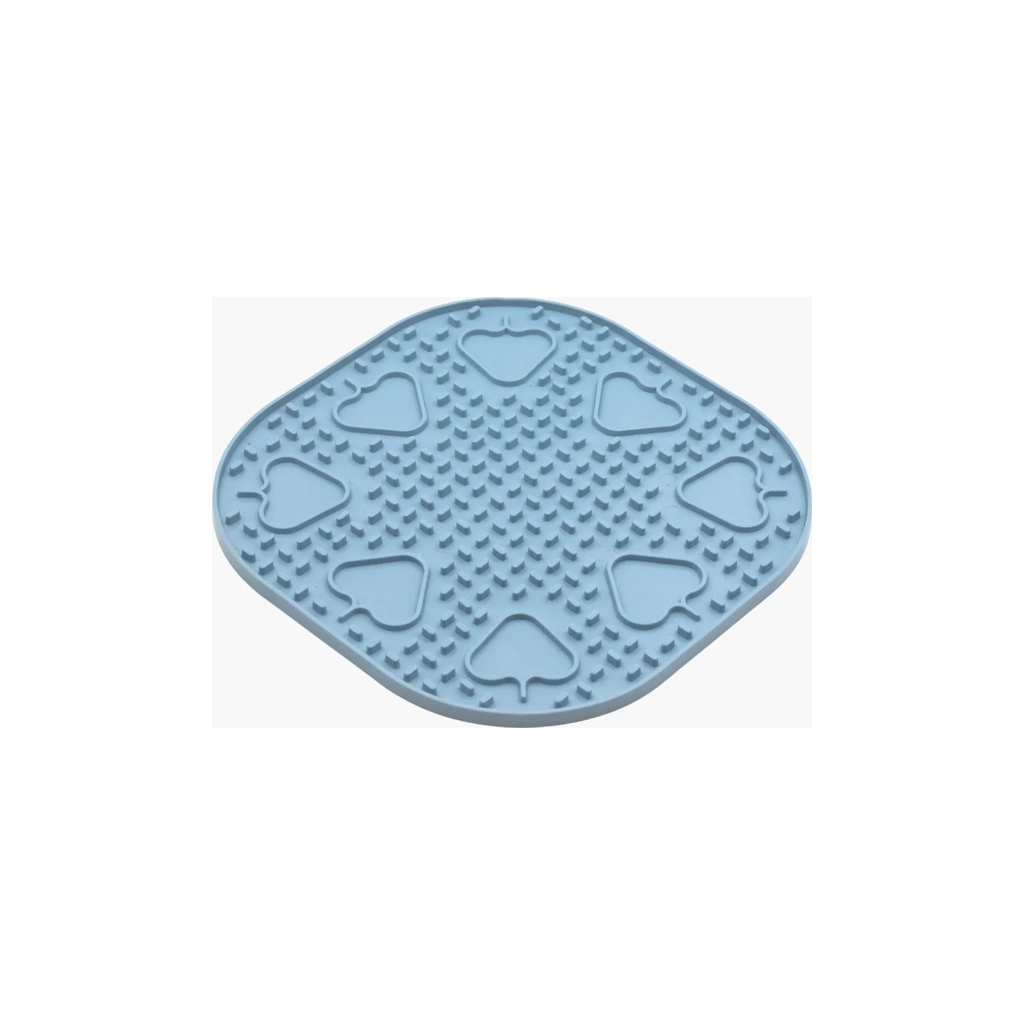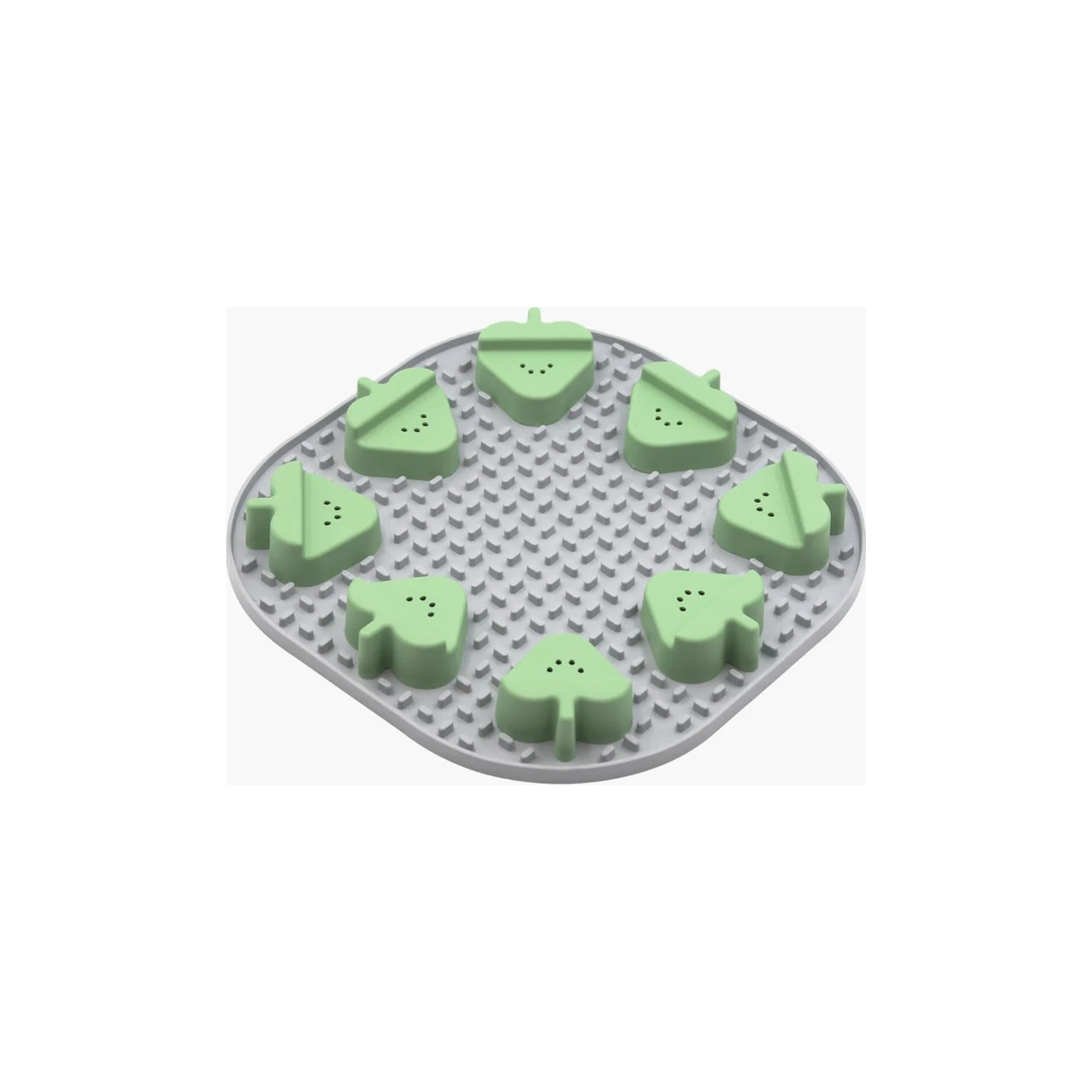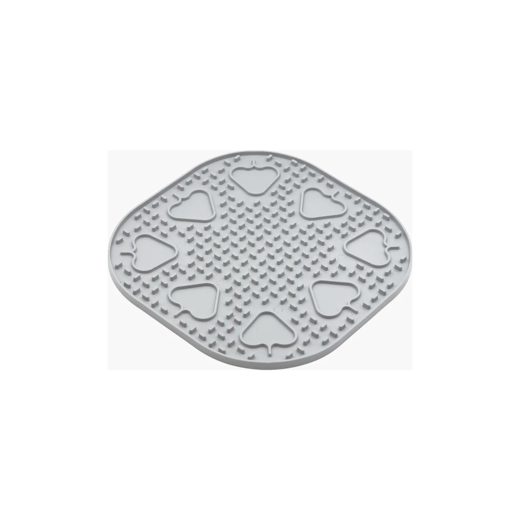 Спеціальний килимок, який завдяки рельєфним елементам уповільнює процес споживання їжі, – стане зручним і комфортним для вашого вихованця. Виріб виготовлено з м’якого пластичного матеріалу, що добре прикріплюється до підлоги, завдяки чому не ковзає. Килимок для злизування ласощів і їжі має заспокійливий та розслабляючий ефект для домашніх тварин. Килимки виготовлені з потішними рельєфними візерунками та у нейтральних кольорах, завдяки чому мають стильний вигляд. Основні характеристики: - Розміри: 27 х 27 см - Сповільнює процес споживання їжі - Заспокоює та розслабляє - Сприяє підтримці гігієни порожнини рота - Вихованцю буде цікаво вилизувати та виймати їжу з куточків і щілин, тому це добре його відволікатиме - Виріб можна заморожувати - Не ковзає підлогою - Екологічний матеріал: TPE-E (thermoplastic elastomer) - Колір: чорний, темно-сірий, світло-сірий, синій, бежевий, жовтий, зелений, рожевий. Виготовлено в Польщі.
