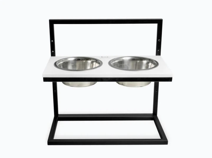 Миски на підставці Harley and Cho з регульованою висотою Lift White Stone + Black Large 52x26cm / висота регулюється від 15c