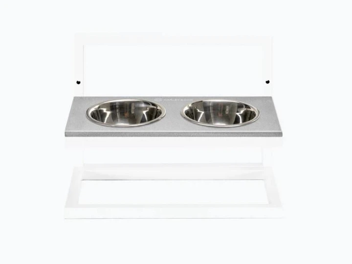 Миски на підставці Harley and Cho з регульованою висотою Lift White Stone + White Large 52x26cm / висота регулюється від 15c