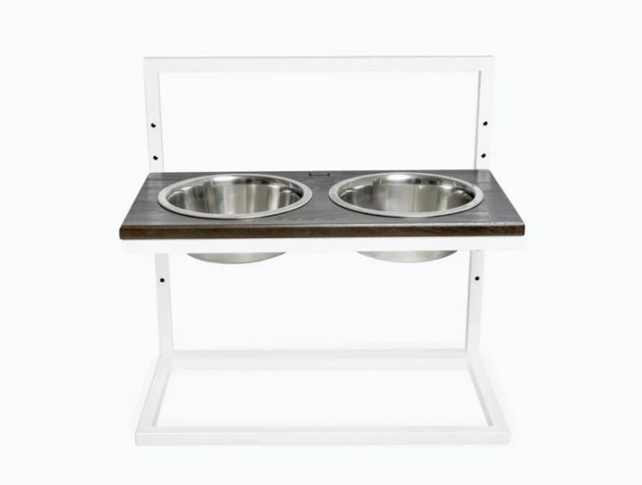 Миски на підставці Harley and Cho з регульованою висотою Lift White Wood + Black Large 52x26cm / висота регулюється від 15cm