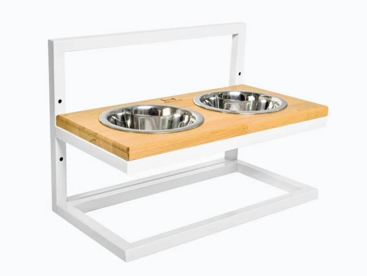 Миски на підставці Harley and Cho з регульованою висотою Lift White Wood + White Medium 42x21cm / висота 10cm-15сm-20cm/ Мис