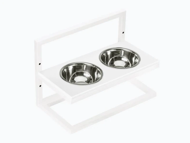 Миски на підставці Harley and Cho з регульованою висотою Lift White Wood + White Large 52x26cm / висота регулюється від 15cm