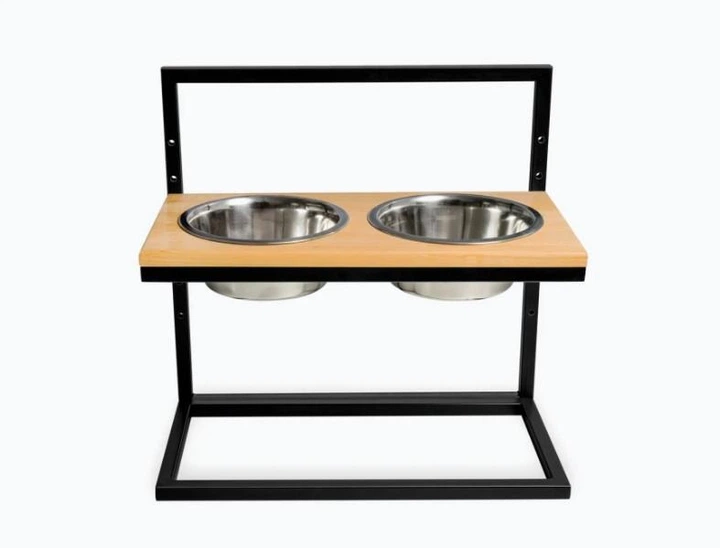 Миски на підставці Harley and Cho з регульованою висотою Lift Natural Wood + Black Medium 42x21cm / висота 10cm-15сm-20cm/ М