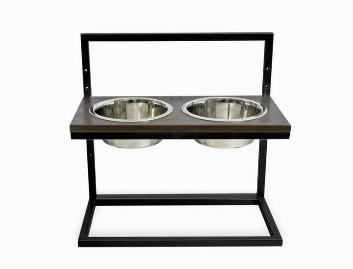 Миски на підставці Harley and Cho з регульованою висотою Lift Brown wood + Black Large 52x26cm / висота регулюється від 15cm
