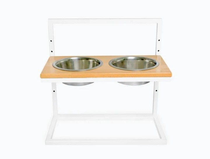 Миски на підставці Harley and Cho з регульованою висотою Lift Brown Wood + White Large 52x26cm / висота регулюється від 15cm