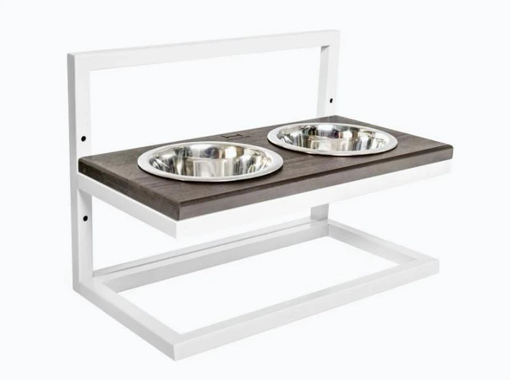 Миски на підставці Harley and Cho з регульованою висотою Lift White Wood + Black Medium 42x21cm / висота 10cm-15сm-20cm/ Мис