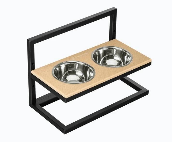 Миски на підставці Harley and Cho з регульованою висотою Lift Beige Stone + Black Large 52x26cm / висота регулюється від 15c