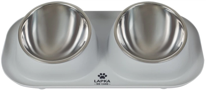Годівниця Lapka подвійна з металевими мисками Сіра (LPK-25)