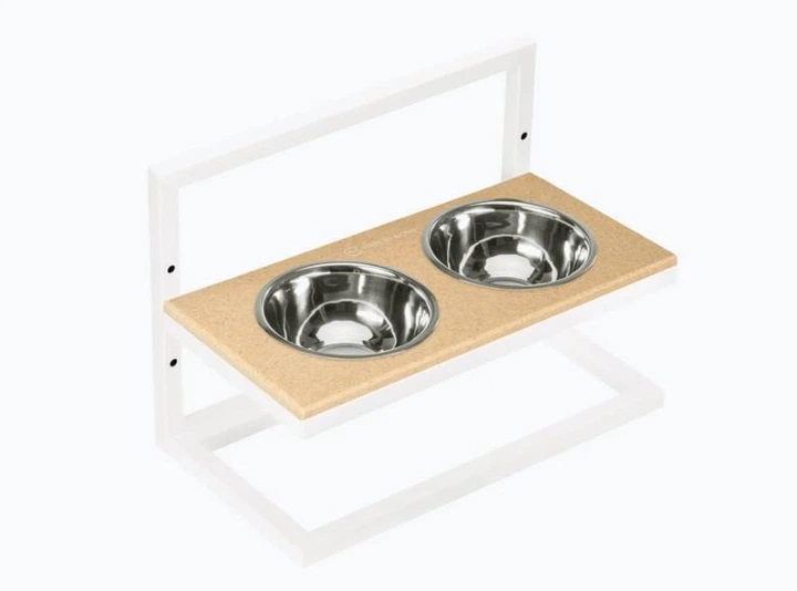 Миски на підставці Harley and Cho з регульованою висотою Lift Beige Stone + White Medium 42x21cm / висота 10cm-15сm-20cm/ Ми