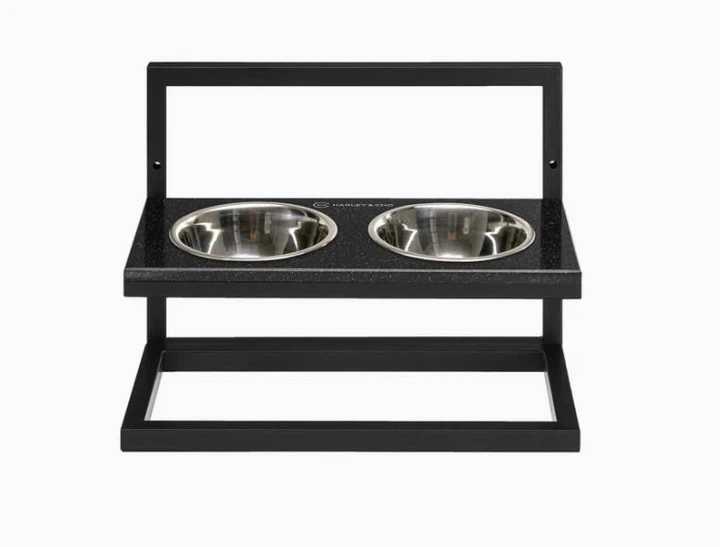 Миски на підставці Harley and Cho з регульованою висотою Lift Black Stone + Black Large 52x26cm / висота регулюється від 15c