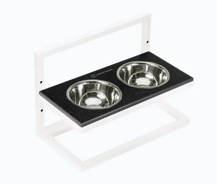 Миски на підставці Harley and Cho з регульованою висотою Lift Black Stone + White Medium 42x21cm / висота 10cm-15сm-20cm/ Ми
