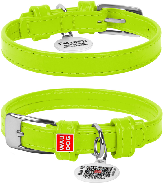Нашийник для собак шкіряний WAUDOG Glamour з QR паспортом без прикрас XS ширина 12 мм довжина 21-29 см Салатовий (32565)