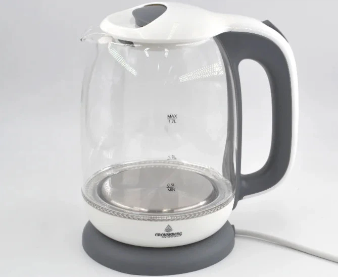 Електричний скляний чайник Crownberg з підсвіткою, 1.7 л, 1800 Вт