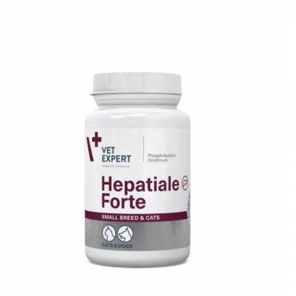 Vet Expert Hepatiale Forte (Вет Експерт Гепатіале Форте) – нутрицевтична добавка для котів і собак, рекомендована для підтримання функцій печінки при її розладах, а також у разі хронічної печінкової недостатності. Відновлює та захищає клітини печінки, прискорює їхню регенерацію та одужання тканини, підтримує метаболізм білків у печінці, сприяє засвоєнню вітамінів і регуляції циклу обміну сечовини.